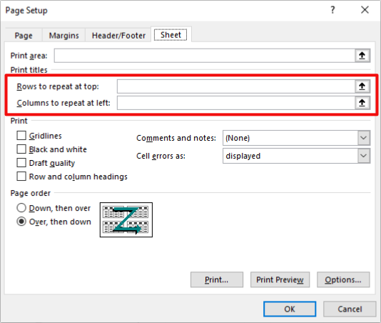 单击 Enter 返回页面设置对话框,然后单击确定。